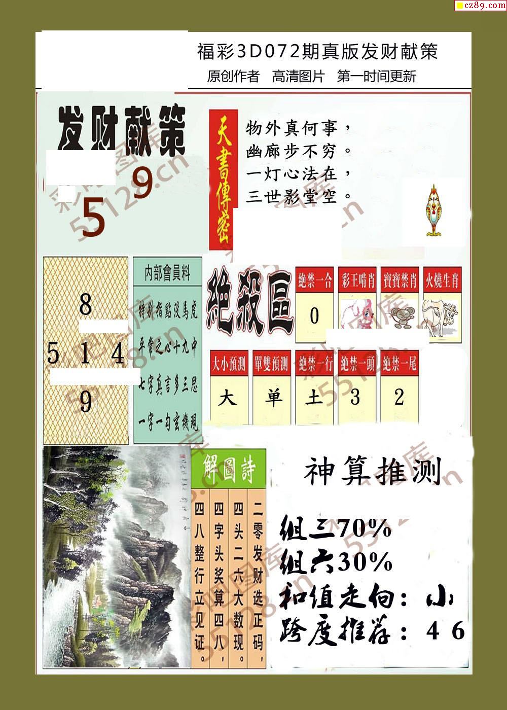 首页 > 福彩3D图谜 > 发财献策26年072期福彩3d字画报