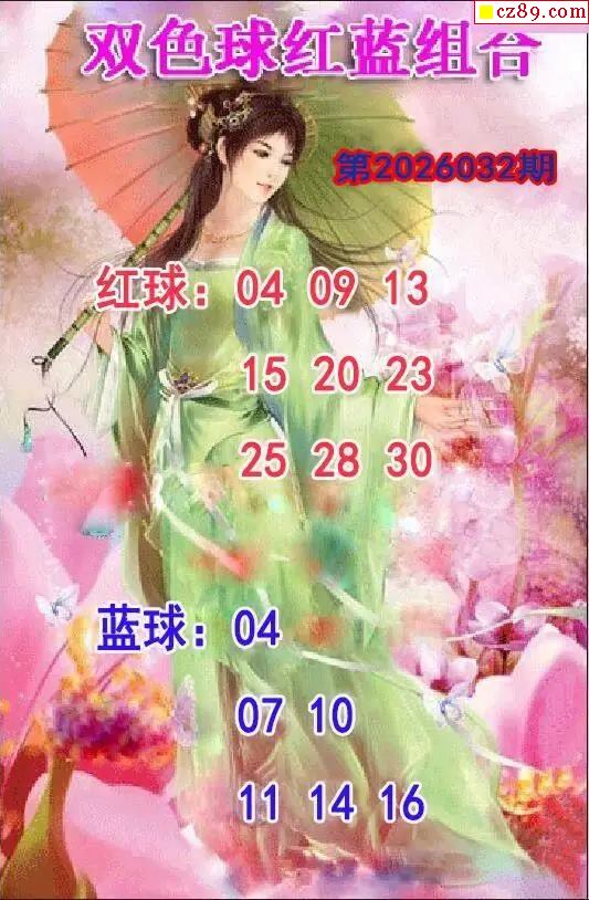 仕女红蓝组合26年032期双色球图谜
