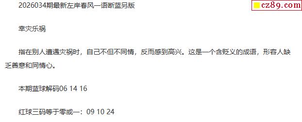 > 26年福彩双色球034期 左岸春风一语断蓝另版